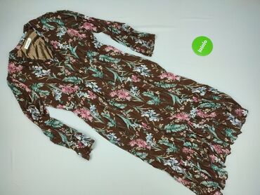 Sukienka damska maxi w kwiaty - Krój: długi, zwiewny fason maxi z szerokim dołem - Wzór: delikatny, akwarelowy motyw roślin i kwiatów na beżowym tle - Materiał: lekka, miękko układająca się tkanin...