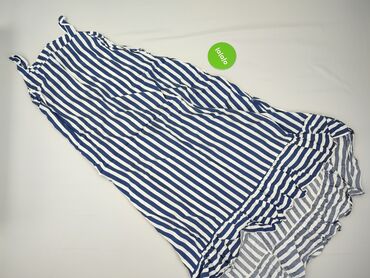 Sukienka damska maxi w paski - Fason: długa sukienka maxi, lekko rozkloszowany dół - Dekolt: okrągły - Ramiączka: cienkie, podwójne, krzyżujące się na plecach - Wzór: poziome granatowo-białe paski...