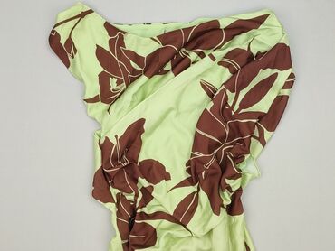 - Krój: długa, dopasowana, z marszczeniami po bokach; dekolt asymetryczny (jedno ramię odkryte).