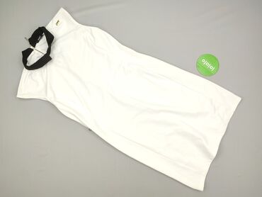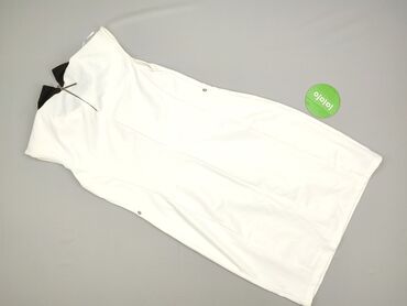 Sukienka damska, rozmiar L. - Fason: ołówkowy, długość midi (przed kolano), z krótkim rękawem - Kolorystyka: beżowo‑czarna, z wyszczuplającymi panelami po bokach - Przód: efektowna, duża aplikacja...