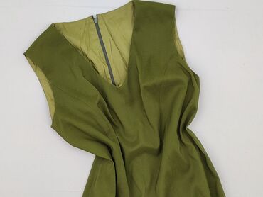 Sukienka damska GREENCE, rozmiar M. - Kolor: oliwkowy/khaki - Krój: bez rękawów, dekolt łódka, talia podkreślona wiązanym paskiem-kokardą; z przodu zakładki nadające lekko rozkloszowany kształt, t...