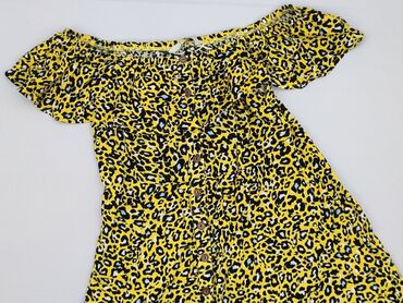 Sukienka damska House Brand – żółta, z odkrytymi ramionami (hiszpanka) - Fason: luźny, prosty, długość mini/przed kolano - Dekolt: hiszpański z elastyczną gumką i delikatną falbaną wokół - Rękawy:...