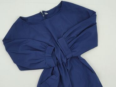 Granatowa sukienka midi z długim rękawem - Fason: dopasowana góra, lekko rozkloszowany dół, długość za kolano/midi - Dekolt: w kształcie litery V - Zapięcie: zamek błyskawiczny z tyłu - Ozdoby: tr...