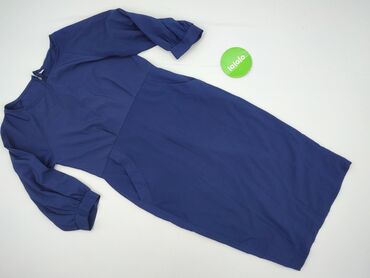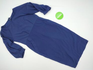 Sukienka w paski – styl marynistyczny - Fason: ołówkowy, dopasowany do sylwetki - Długość: midi/przed kolano - Rękaw: 3/4 - Dekolt: łódka - Zapięcie: suwak z tyłu - Wzór: poziome pasy granatowo-bi...Stan: