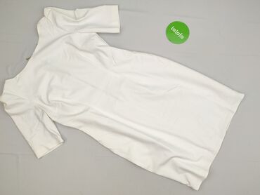 Sukienka damska w kolorze białym/ecru, o dopasowanym kroju midi. - Fason: ołówkowy, podkreślający sylwetkę, długość za kolano. - Dekolt: łódka. - Rękawy: 3/4 z ażurowej koronki, efektowny wzór. ...