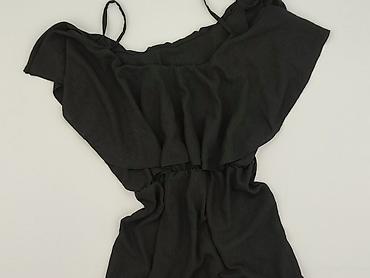 Sukienka damska bez rękawów, czarna, rozmiar S. - Fason: dopasowana góra, lekko rozszerzany dół; boczne rozcięcie wiązane rzemykami/paskami (dekoracyjne przeszycia i sznurowania wzdłuż jednego bok...