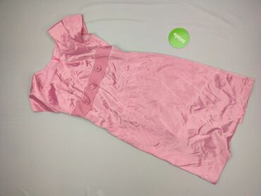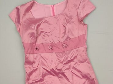 Sukienka damska w kolorze pudrowego różu, rozmiar S. - Krój: dopasowana góra z modelującymi cięciami, od talii rozkloszowany dół z kontrafałdami. - Rękaw: krótki. - Dekolt: okrągły. - Zapięcie: dł...