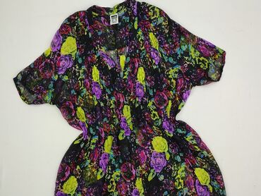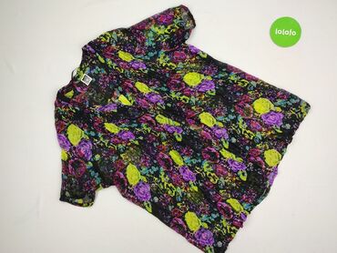 Bluzka damska YOURS - Krój: luźny, zwiewny, tunikowy - Dekolt: okrągły z krótką stójką i wiązaniem na troczki - Rękawy: krótkie, bufiaste z elastyczną gumką przy mankietach - Wzór: kwiatowy – różo...
