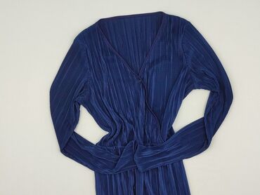 Granatowa sukienka Medicine, rozmiar XS - Fason: midi, lekko rozkloszowany dół z dekoracyjnymi zakładkami/przeszyciami z przodu i z tyłu - Rękaw: długi - Dekolt: okrągły - Zapięcie: kryty zamek na...