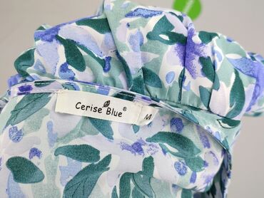 Sukienka damska w kwiaty - Kolor: błękitny z drobnym, gęstym nadrukiem kwiatowym (odcienie bieli, różu i zieleni) - Fason: kopertowy/zakładany, z marszczeniem i gumką w pasie podkreślającą talię -...