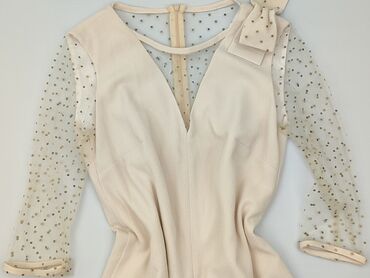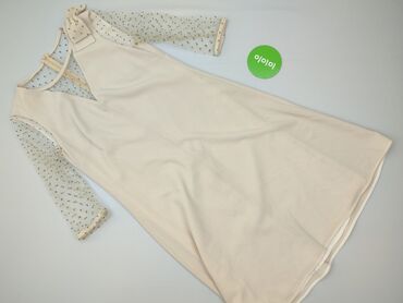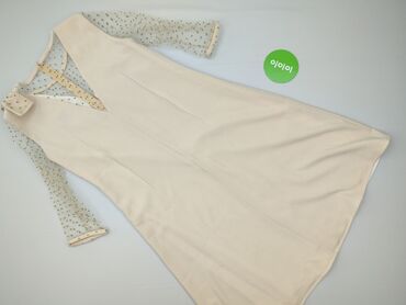 Sukienka damska B’lection, rozmiar 40. - Kolor: jasny, perłowy/beżowo‑kremowy. - Krój: taliowana góra z modelującymi przeszyciami, rozkloszowany dół. - Dekolt: w kształcie litery V. - Rękawy: krót...