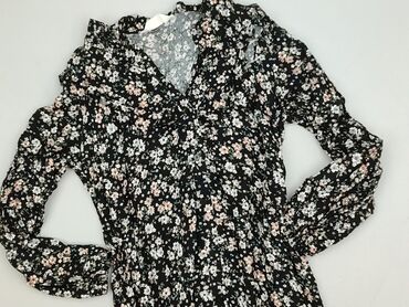 Sukienka damska PRIMARK - Kolor: czarny z kwiatowym nadrukiem w odcieniach pudrowego różu, bieli i zieleni - Fason: rozkloszowana, z odcięciem w talii i marszczeniem, długość midi - Rękawy: 3/4 z ...