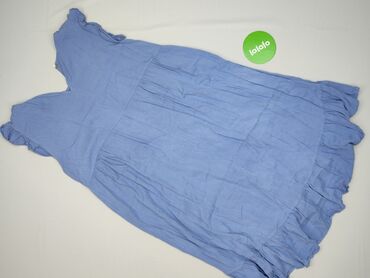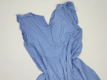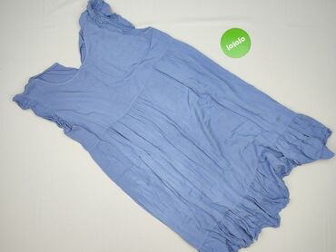 Sukienka damska, jasnoniebieska, o prostym kroju. - Materiał: lekka, miękka tkanina o drobnym, melanżowym wzorze. - Fason: luźny, z krótkim rękawem typu kimono. - Dekolt: okrągły. - Zapięcie: krót...