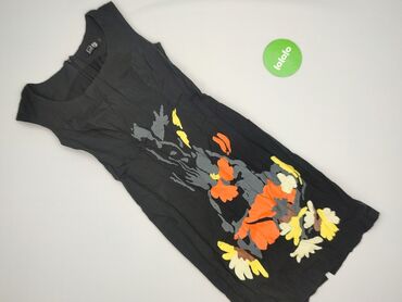 Sukienka damska bez rękawów w kwiatowy wzór to elegancka propozycja na wiele okazji. Dominujące kolory to odcienie żółtego, czarnego i zielonego, tworzące spójną i estetyczną kompozycję. Krój sukie...
