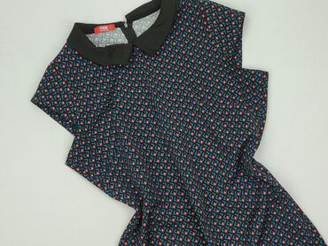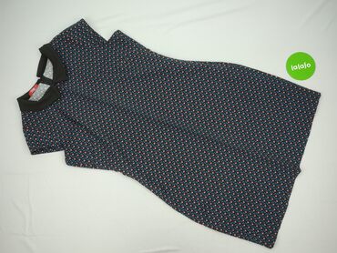 Sukienka damska TXM fashion, rozmiar XS. - Fason: dopasowany, długość midi/przed kolano, krótkie rękawki, wysoka stójka z czarnej tkaniny. - Wzór: geometryczny, wielobarwny (czarny, biały, błękit,...