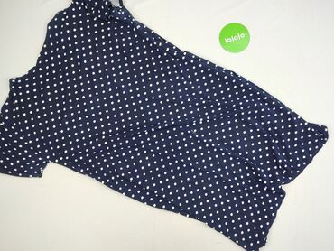 Sukienka damska w grochy, rozmiar L. - Kolor: granatowy z białymi, nieregularnymi kropkami - Krój: kopertowy look z dekoltem V, taliowana, dół z zakładką (efekt wrap) - Rękaw: do łokcia - Długość:...