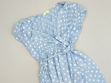 Sukienka damska w groszki - Kolor: biała w granatowe kropki - Krój: kopertowy przód z dekoltem V - Talia: elastyczna, marszczona – podkreśla sylwetkę i daje wygodę - Rękawy: krótkie z delikatnymi ...