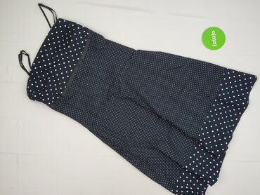 Granatowa sukienka w białe grochy – Lady Style, rozmiar M - Fason: lekko rozkloszowana, odcinana i marszczona w talii (gumka), podkreśla sylwetkę - Dekolt: zaokrąglony - Rękawy: krótkie, z delikat...