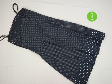 Granatowa sukienka w białe grochy - Klasyczny wzór w duże kropki na granatowym tle - Długość midi, rozkloszowany dół z marszczeniami zapewnia ładną linię i swobodę ruchu - Krótki rękawek typu cap ...Stan:
