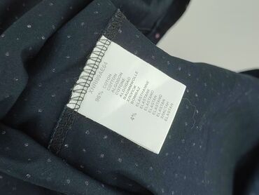 Granatowa sukienka w białe groszki, rozmiar M. - Krój koszulowy z kołnierzykiem - Długość midi, rozkloszowany dół - Długi rękaw z gumką przy mankiecie - Pasek do wiązania w talii + elastyczna tali...