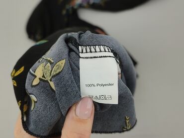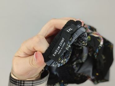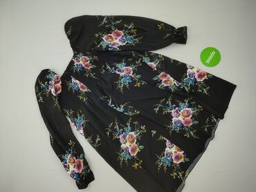 Rozkloszowana sukienka midi marki Shein Curve w rozmiarze 0XL. Charakteryzuje się czarnym tłem z białym wzorem w drobne kwiaty. Posiada cienkie ramiączka wiązane na ramionach oraz dekolt typu halte...