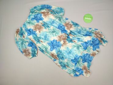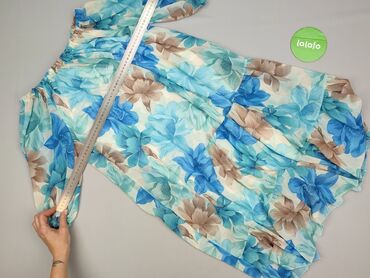 - Wzór: duże kwiaty w odcieniach błękitu, turkusu i beżu na jasnym tle