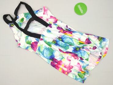 Sukienka damska bez rękawów z kolorowym, kwiatowym nadrukiem akwarelowym. - Fason: dopasowana góra, lekko rozkloszowany dół; długość mini/przed kolano - Dekolt: okrągły - Ramiączka: szerokie, w ko...