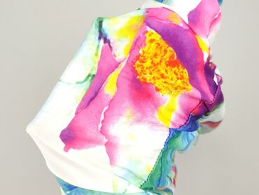 - Wzór: wielobarwne kwiaty w odcieniach fuksji, zieleni, błękitu, żółci na białym tle.
