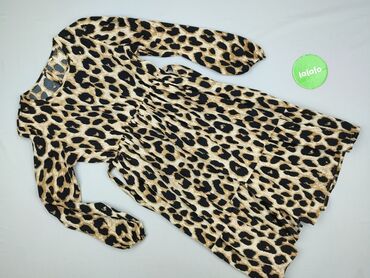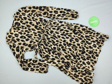 Sukienka damska z wzorem w panterkę - Krój: luźny, oversize, z szerokimi rękawami typu kimono - Dekolt: w kształcie litery V - Długość: midi (na zdjęciach widoczna cała długość) - Zapięcie: na ple...
