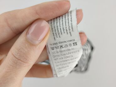 - Pielęgnacja (z metki): delikatne pranie w 30°C, nie używać wybielacza, prasowanie w niskiej temp., możliwe czyszczenie chemiczne, nie suszyć w suszarce