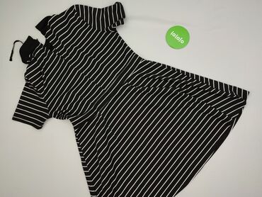 Sukienka midi w paski - Kolor: czarny w wąskie, poziome białe paski - Fason: dopasowany, długość midi, krótkie rękawy - Dekolt: okrągły - Materiał: miękka, elastyczna dzianina (przyjemna w dotyku,...