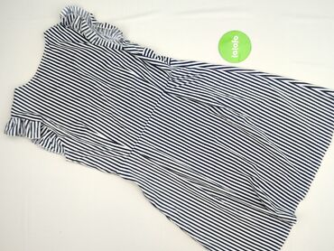 Sukienka w paski – granatowo-biała, o kroju midi - Klasyczny, marynistyczny wzór: szerokie poziome paski w kolorze granatu i bieli - Bez rękawów, okrągły dekolt - Zamek z tyłu ułatwiający zakładan...