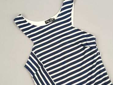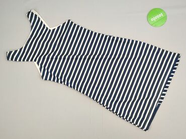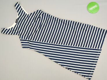 Sukienka dzianinowa w paski - Fason: prosta, dopasowana, bez rękawów (na szerokich ramiączkach), za kolano/ midi - Dekolt: okrągły - Wzór: poziome paski w stylu marynistycznym – granat i biel - Ma...