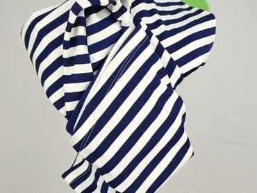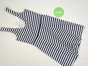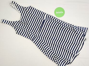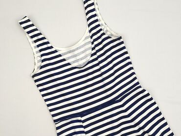 Sukienka w paski – granatowo-biała, bez rękawów - Krój: lekko rozkloszowana, długość przed kolano - Talia: elastyczna gumka podkreślająca sylwetkę - Dekolt: marszczony, na gumce - Wzór: pionowe, w...