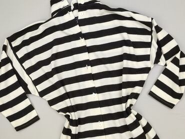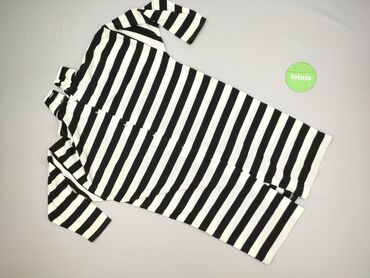 Czarny kardigan w białe, poziome pasy - Krój: rozpinany bez zapięcia (otwarty przód), rękawy 3/4 - Wzór: szerokie biało‑czarne pasy - Dekolt: zaokrąglony - Materiał: 100% akryl (etykieta na zdjęci...
