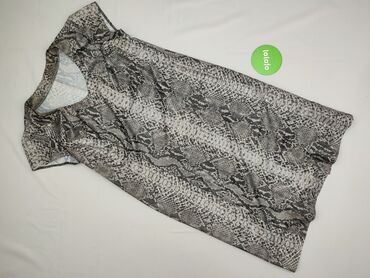 Sukienka damska bez rękawów z printem w wężową skórę (odcienie czerni, szarości i bieli). - Fason: lekko rozkloszowany dół, dopasowana góra, odcięcie w talii podkreślające sylwetkę - Dekolt: okrąg...Stan: