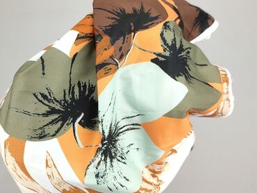 - Fason: prosta, lekko dopasowana, długość midi/maxi (w zależności od wzrostu) - Dekolt: asymetryczny – jedno ramię odkryte, drugie z krótkim rękawem - Ramiączko: ozdobne, z podwójną klamrą w kolorze złotym - Rękawy: krótkie - Wzór: duże, graficzne kwiaty i liście; kolory bieli, pomarańczu, oliwki, miętowej zieleni i brązu - Materiał: 100% poliester (metka na zdjęciu) - Rozmiar z metki: 3XL - Tkanina gładka, lekko lejąca, nieprześwitująca - Wykończenia: obszyte krawędzie, miękka lamówka przy dekolcie