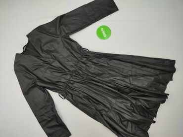 Sukienka mini z eko‑skóry, czarna, z długim rękawem. - Fason: dopasowany, długość przed kolano - Materiał: eko‑skóra na wierzchu, miękka podszewka - Dekolt: okrągły - Zapięcie: suwak z tyłu na cał...Stan:
