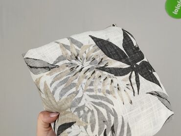 - Wzór: roślinny/tropikalny – liście w odcieniach czerni, szarości i beżu na jasnym tle