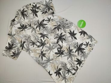 Sukienka koszulowa w tropikalny print - Fason: koszulowy, zapinana na guziki z przodu - Rękaw: krótki - Długość: midi, dół zaokrąglony - Wzór: liście w odcieniach zieleni, brązu, czerni i pudroweg...
