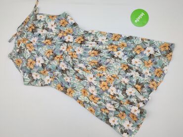 Sukienka letnia SHEIN w kwiaty - Krój: na ramiączkach, delikatnie rozkloszowany dół - Print: małe białe kwiatuszki z granatowymi detalami na musztardowo‑żółtym tle - Góra: elastyczna, marszczona (...