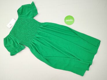 Zielona sukienka midi z elastyczną, marszczoną górą.