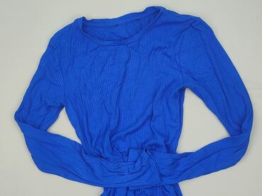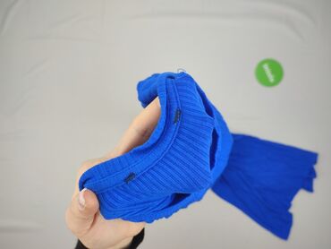 Sweter/sukienka dzianinowa damska w kolorze kobaltowym (intensywny niebieski). - Fason: dopasowany, prążkowana dzianina - Dekolt: hiszpański/off-shoulder z delikatną falbanką przy krawędzi - Rękaw...
