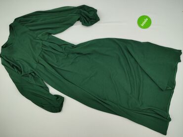 Damska sukienka w kolorze ciemnozielonym, charakteryzująca się prostym krojem i długością midi. Sukienka ma półokrągły dekolt i rękawy długości 3/4, które można podwinąć. Wykonana z dzianiny o wyra...