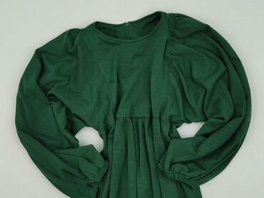 - Fason: odcinana w talii, lekko marszczona poniżej odcięcia, z obfitymi rękawami zakończonymi gumką.
