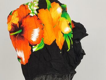 - Kolor: czarny z intensywnym, tropikalnym nadrukiem kwiatów w odcieniach pomarańczu, zieleni i bieli oraz motylkami w kolorze pomarańczowym.