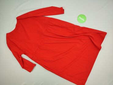 Sukienka damska, kolor intensywna czerwień. - Krój: prosty/tuba, długość do kolan. - Rękaw: 3/4. - Dekolt: łagodnie zaokrąglony. - Materiał: średniej grubości, elastyczny, gładki, miękko układ...