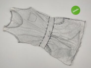Szara sukienka bez rękawów z miękkiej, elastycznej dzianiny. - Prosty, sportowy fason typu tank z wycięciem boków - Okrągły dekolt - Kieszonka na piersi z naszywką z serduszkiem - Talia regulow...Stan: