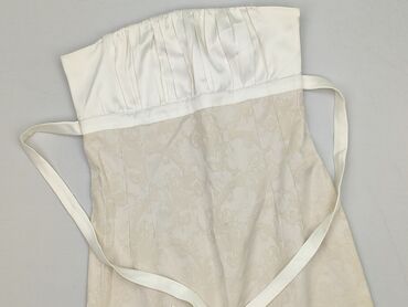 Sukienka damska, rozmiar 38, kolor ecru/śmietankowy. - Góra: koronkowa, z gęstym kwiatowym wzorem; półprzezroczysta siateczka z wyraźnie wykończonymi falowanymi krawędziami. - Dekolt: w kształcie ...