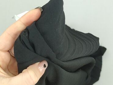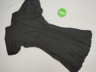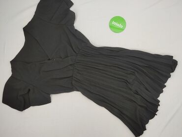 Czarna sukienka bez ramiączek, o kroju w kształcie litery A. - Tkanina: 100% poliester, grubsza, elastyczna, z wyraźną, falującą fakturą. - Fason: dopasowana w talii, dół z zakładkami tworzącymi ...